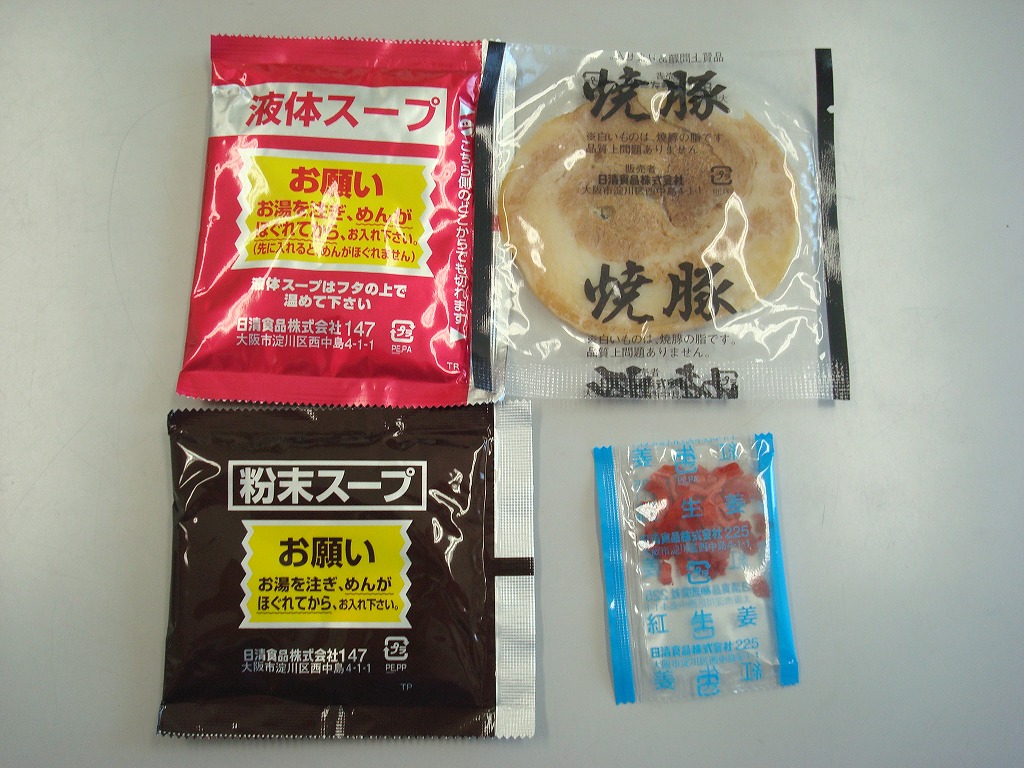 液体スープ、調味油などはなく、麺と粉スープ、具のみの構成です。