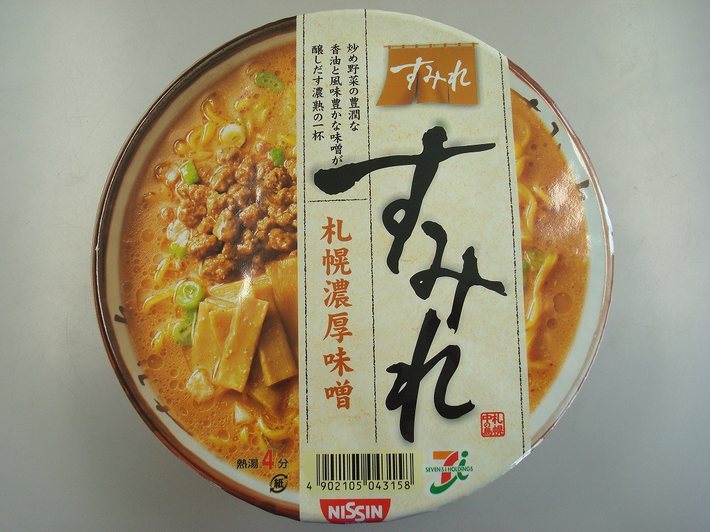 すみれ 札幌濃厚味噌 「すみれ 札幌濃厚味噌」 セブンイレブン かやく等 お湯を注いで待つこと4分 「炒め野菜の芳醇な香味と風味豊かな味噌」 まさにその通りでした。 麺は細麺でスープは濃厚でした。油が浮いてこってりとしています。 こちらのカップラーメンは美味しいと友人に勧められて食べてみたものです。 友人は味噌ラーメンが大好きなのでこちらがきっと気に入ったのでしょうね。 2010.06.18